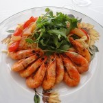 Une fois le fumet réduit, ajouter les tomates, puis continuer la cuisson tout en mélangeant pendant encore deux minutes afin de dorer le tout, puis servir avec des pâtes ou du riz et décoré avec un peu de salade mesclun.